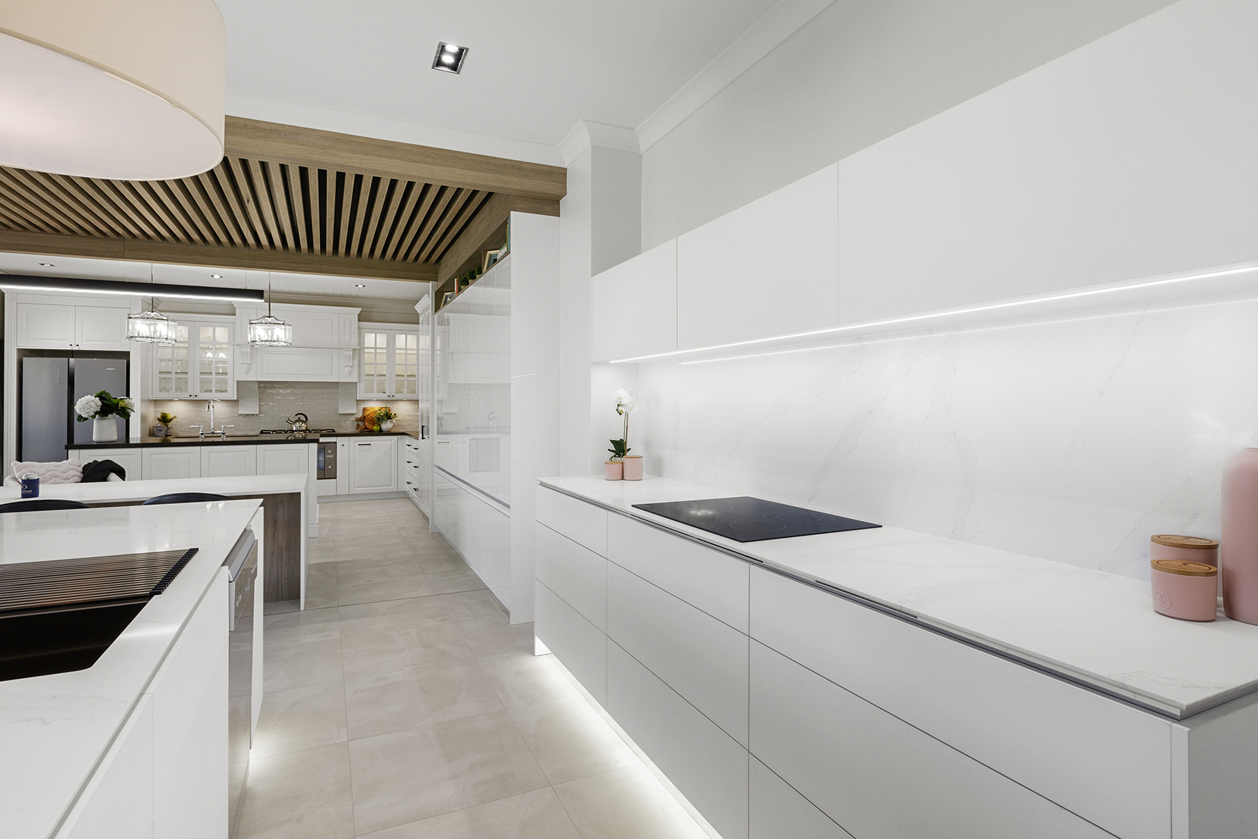 In providing interior design services, as well as exterior detailing, EM interiors utilised AutoCAD software together with unique graphic design packages to present design concepts and selected finishes. A series of meetings were held with our business partners in order to work in collaboration, combining their industry experience and preference for storage and light concepts. It was a team effort between Eileen Middleton Interiors and Askin Cabinets to arrive at the well considered design solution.