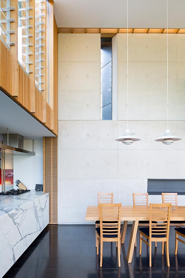 The overall look for this project combined form and function to replicate the same design ethic as the great twentieth-century modernist architects from the Bauhaus era. The Interior Designer’s contribution to the kitchen observed through the selection of the Statuario marble benchtop against the basalt tiled floors for a clean but sophisticated look. The marble surfaces become the highlight, surrounded by the minimal back wall cabinetry as well as accents created by the darker tapware. The transparent glazing was carried through to the kitchen envelope providing for an abundance of natural light, and to add to this was the introduction of warmer colour tones of timber in the adjacent dining area through the selection of furniture and the Screenwood cladding. The designer had to consider the low-maintenance qualities of all the specified selections to minimize the work undertaken by the client.